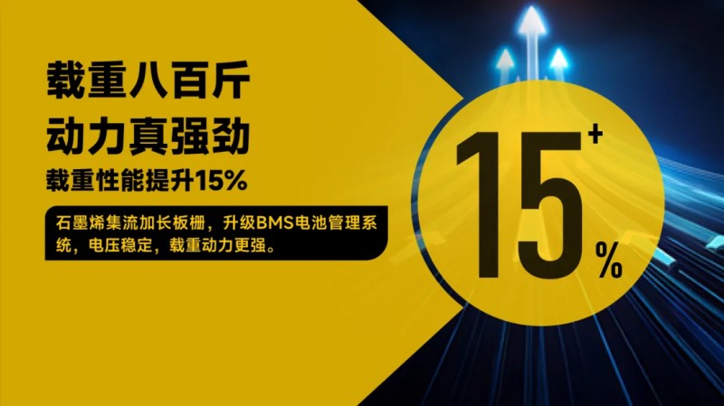 石墨烯集流加長板柵和升級(jí)BMS電池管理系統(tǒng),使得超威大力神大大大電池恒定電壓輸出更穩(wěn)定,電池載重性能提升15%。動(dòng)力與續(xù)航兼具,載重滿滿,依舊全程高能!