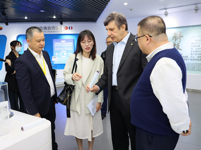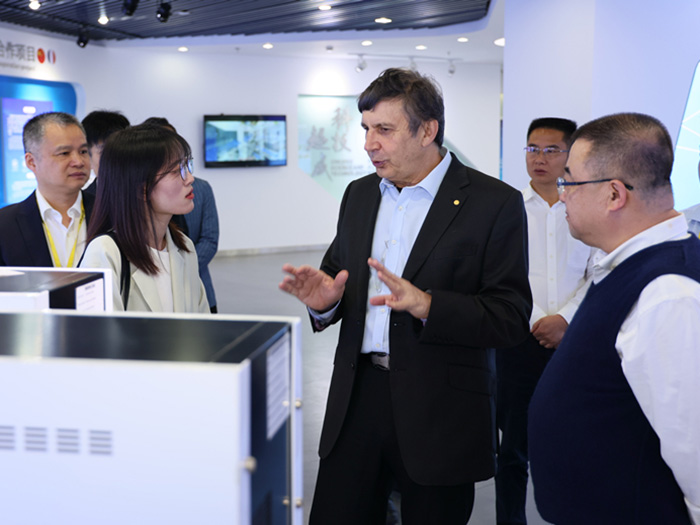 在科技中心,安德烈?海姆教授饒有興趣地參觀了超威科技項目研發(fā)實驗室。當看到石墨烯項目組研發(fā)人員正在進行材料分析時,他饒有興趣地拿起一瓶石墨烯材料仔細觀察,并與研發(fā)人員進行相關技術問題。